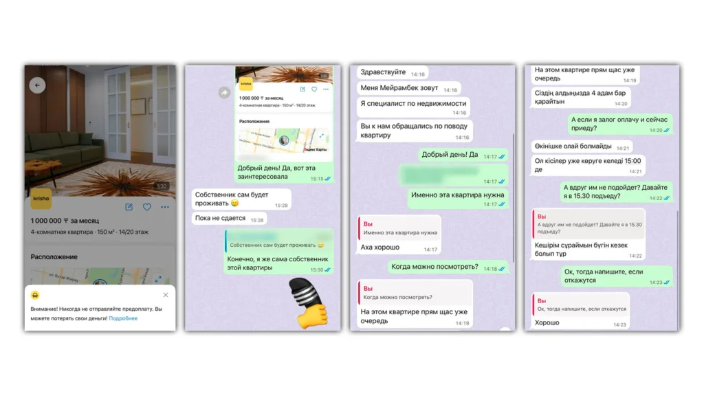 Параллельно семья попыталась связаться с авторами объявления — риелторами. Гульсум решила «снять свою же квартиру», чтобы понять схему. Реакция оказалась типичной: то хозяин передумал сдавать жильё, то квартиру «только что сняли» другие люди.