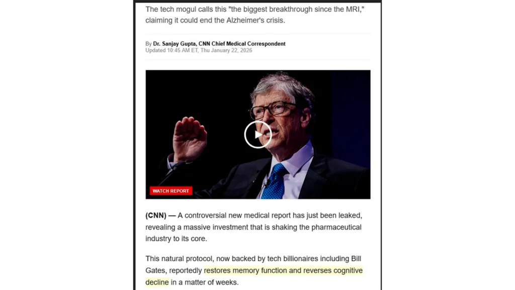 Желіде аталған өнімдердің жарнамасы жиілеген соң, оқырман бірнеше ай бойы Snopes.com редакциясына хат жазып, миллиардер Билл Гейтстің осы өнімдерге қатысы бар-жоғын білгісі келген. Мысалы, бір оқырман CNN агенттігінің мақаласына ұқсайтын скриншотпен бөліскен. Онда: «Технология магнаты мұны «МРТ-дан кейінгі ең үлкен серпіліс» деп атап, Альцгеймер дағдарысын тоқтата алатынын мәлімдеді», — деп жазылған.
