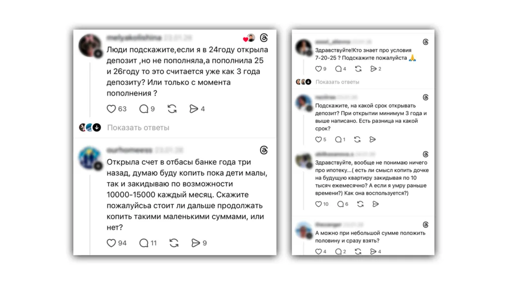 «Ол дегеніміз – үй сатып алуға несие алу үшін, алдымен депозит ашып, баспана сатып алуға қажет жарнаны жинау қажет деген сөз. Үй бағасының жартысын, яғни 50%-ын жинаған соң ғана 3,5%-ға (жылдық тиімді сыйақы мөлшерлемесі 3,6%-4,4% аралығы) және 8,5 %-ға дейінгі (жылдық тиімді сыйақы мөлшерлемесі 9%-9,6% аралығы) мөлшерлемедегі несиеге өтінім беруге болады», — деді банк мамандары.
