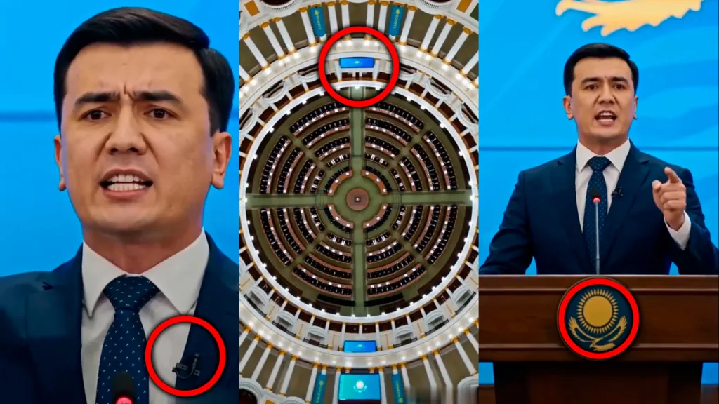 Тыңдаушылар қатарында отырған екі «депутат» басын бір мезгілде, бірдей траекториямен шұлғиды. Мұндай мінсіз синхронды қимыл шынайы өмірде мүмкін емес.