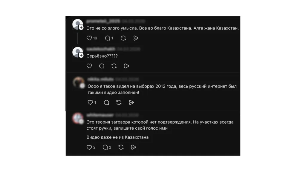 Причину появления в сети старых или снятых в других странах видеороликов накануне политических кампаний мы попросили прокомментировать политолога Жанерке Кайраткызы. По ее словам, подобные видеоролики могут распространяться намеренно.