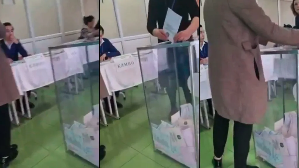 В соцсетях распространяется видео, на котором якобы зафиксирован процесс вброса бюллетеней. Согласно проверке NoFake.kz, эти кадры не связаны с текущим референдумом.